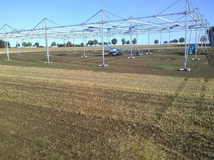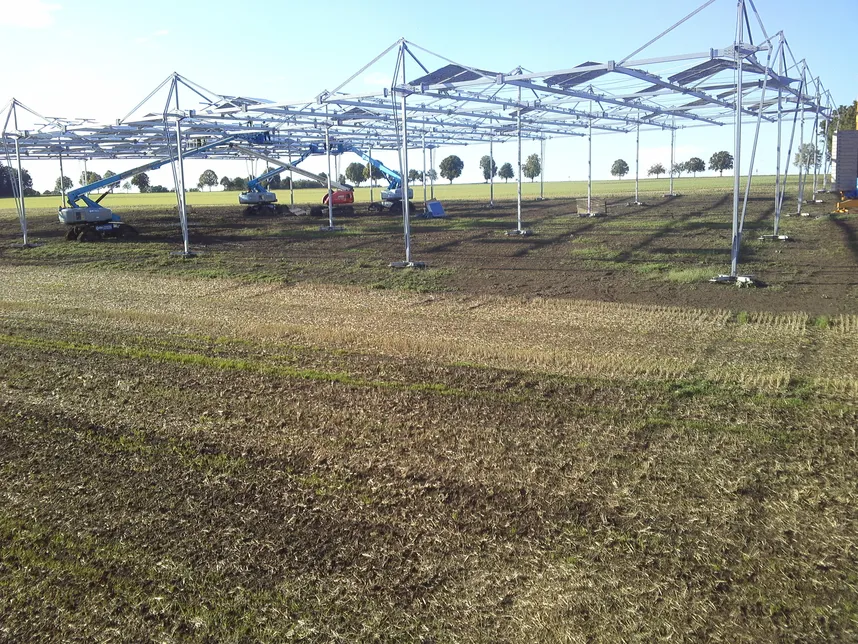 Am Versuchsstandort Ihinger Hof plant die Universität Hohenheim die Errichtung einer hoch aufgeständerten Agri-PV-Anlage, die Ackerbau mit PV kombiniert. Die rund 0,4 Hektar große Forschungsanlage soll der wissenschaftlichen Untersuchung praxisnaher Fragestellungen dienen. Geplanter Baubeginn ist Anfang August 2025. Unter dem System sowie auf einer Referenzfläche soll jährlich eine dreigliedrige Fruchtfolge, bestehend z.B. aus Winterweizen, Kartoffeln und Leguminosen, etabliert. Dadurch können sämtliche Kulturen über mindestens drei Jahre hinweg gleichzeitig beobachtet und ausgewertet werden. Im Mittelpunkt der Forschung stehen die Effekte der Beschattung auf Pflanzenentwicklung, Bodeneigenschaften, das Auftreten von Krankheitserregern sowie das Mikroklima.