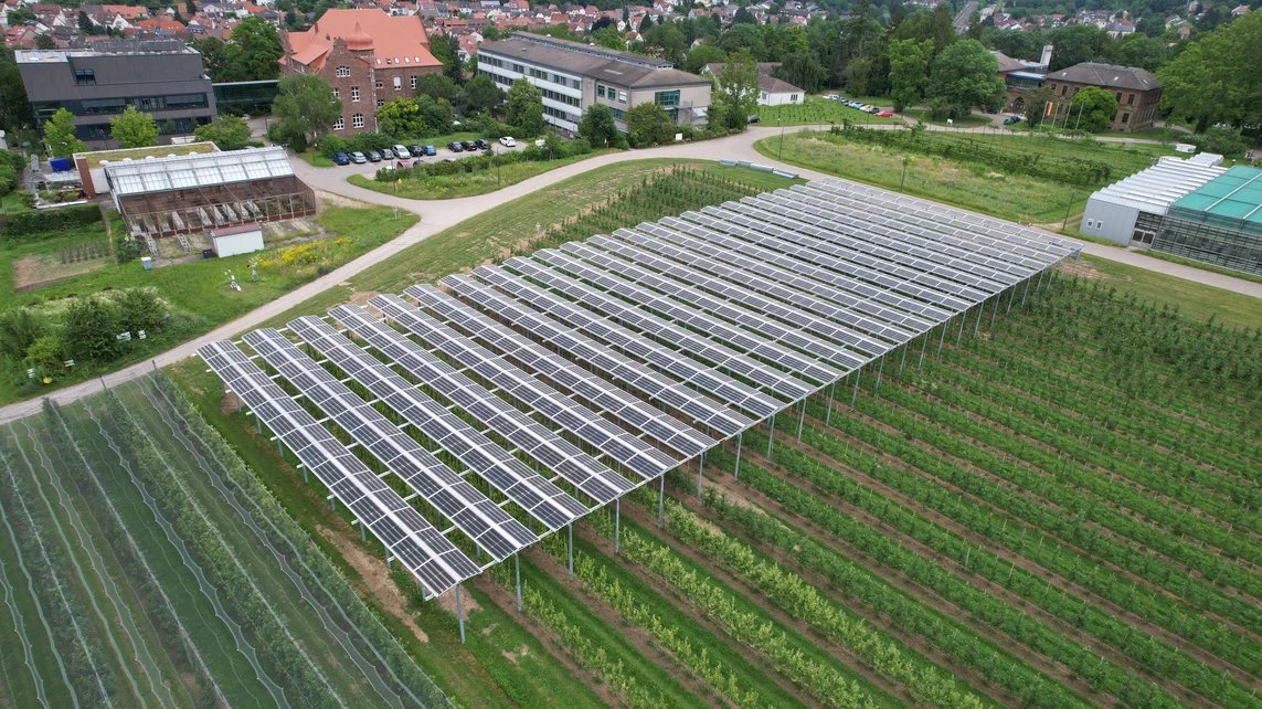 Agri-PV-Anlage am LTZ Augustenberg vollständig eingenetzt.